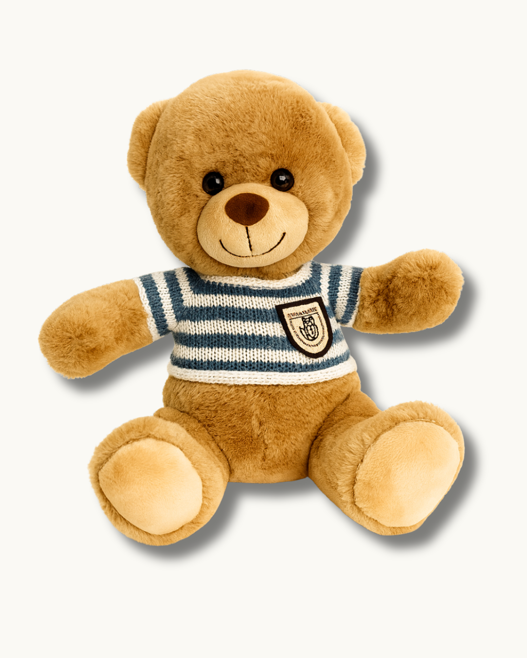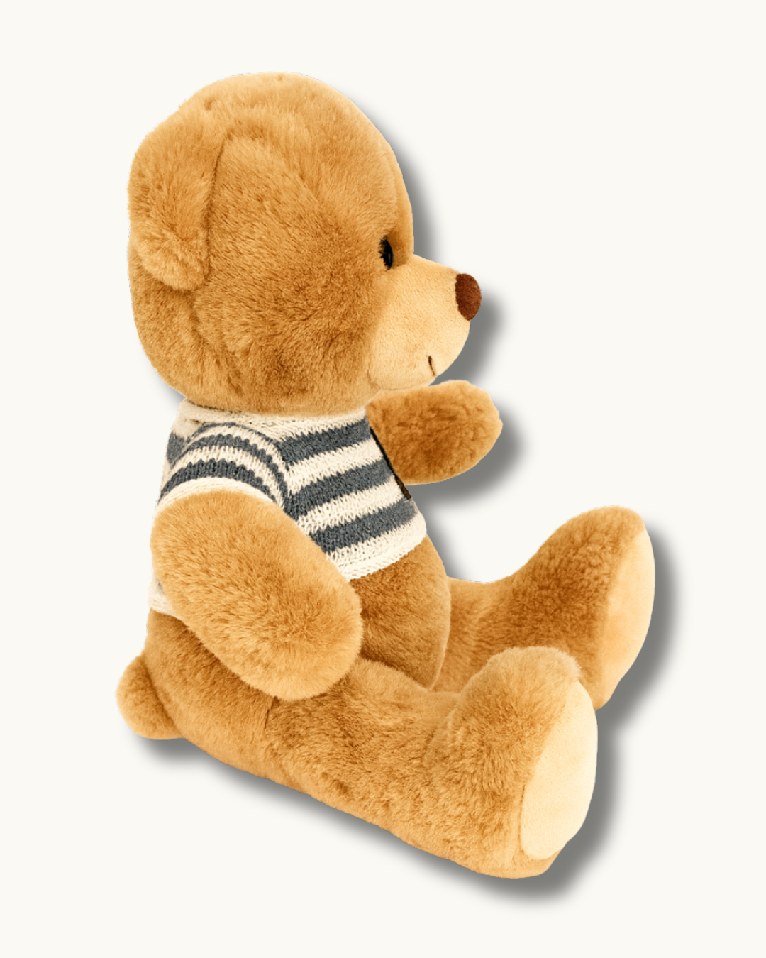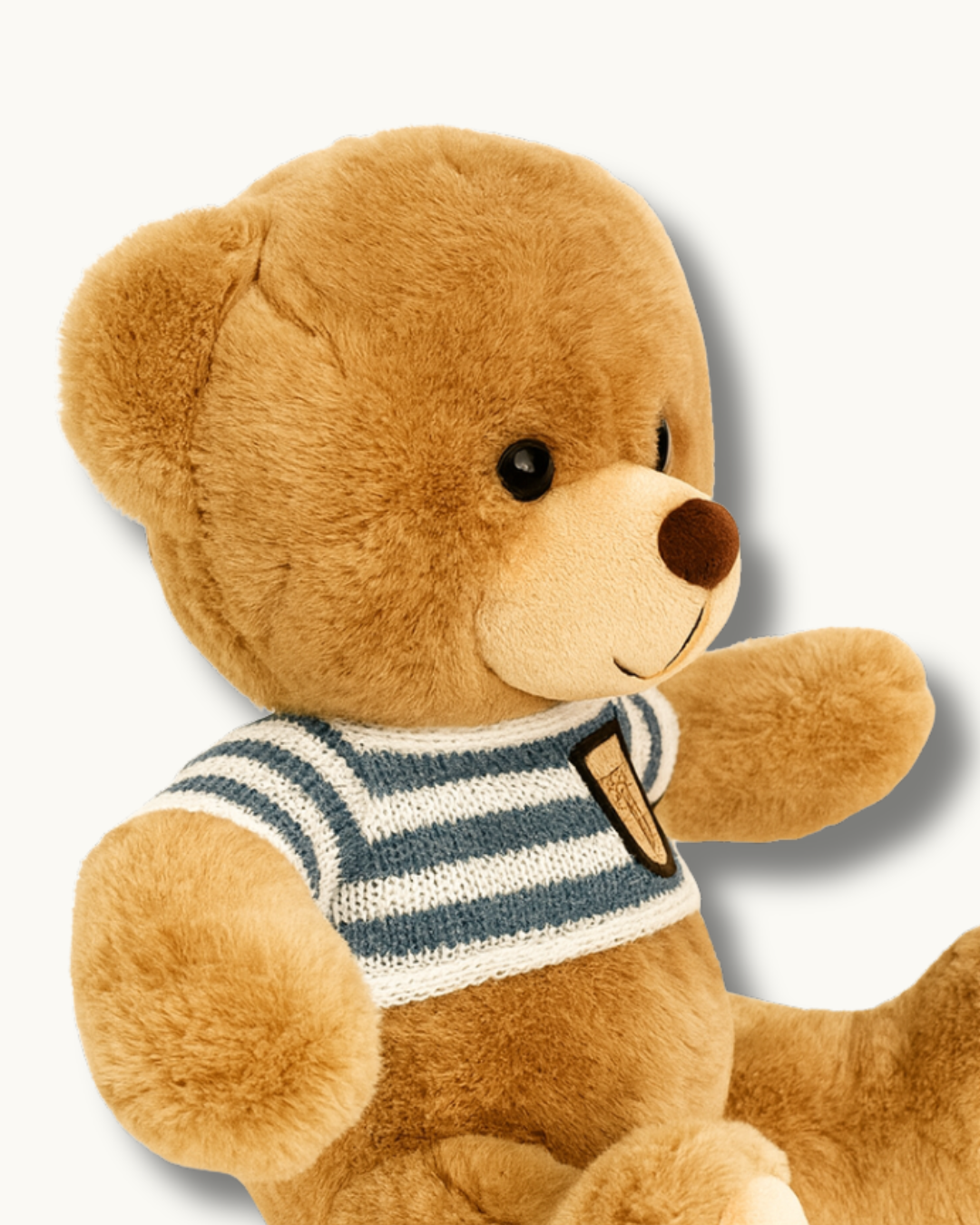 El Osito Bongy es pura ternura con estilo con su suéter de rayas azul y blanco lo convierten en el regalo perfecto para cualquier ocasión. Chester representa esa mezcla ideal entre cariño y calidez desde el primer momento.