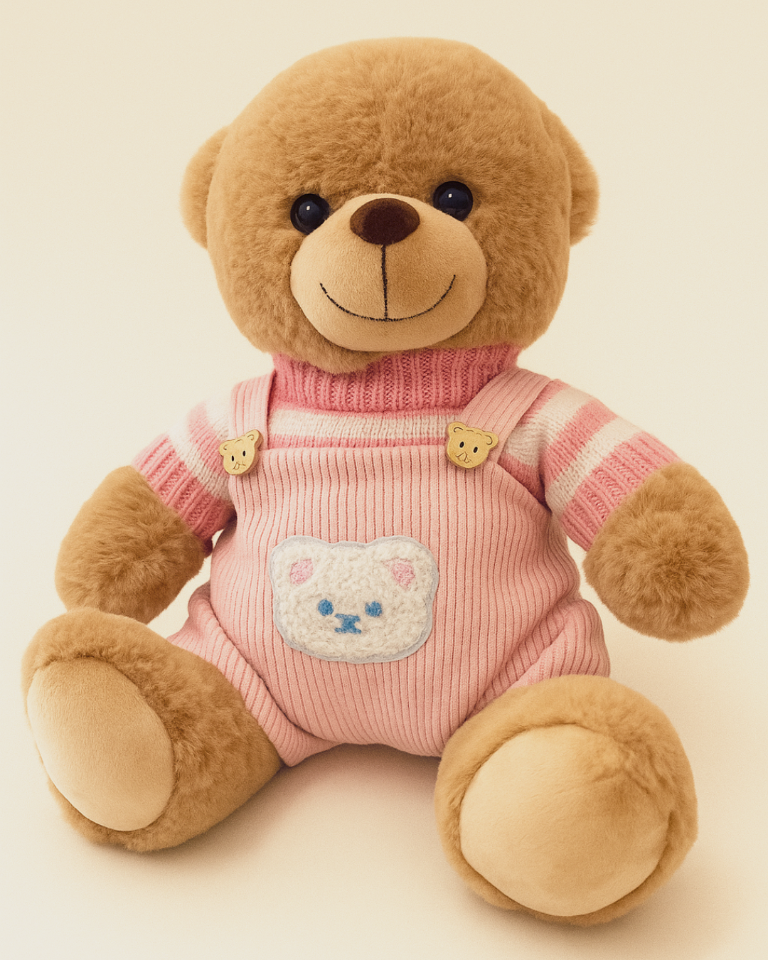 Nuestro Osito Bongy Eterno Cariño, es el compañero perfecto para regalar en cualquier ocasión. Suave al tacto y con un diseño encantador, luce un conjunto rosa con suéter de rayas blanco y rosa que lo hacen aún más adorable.
