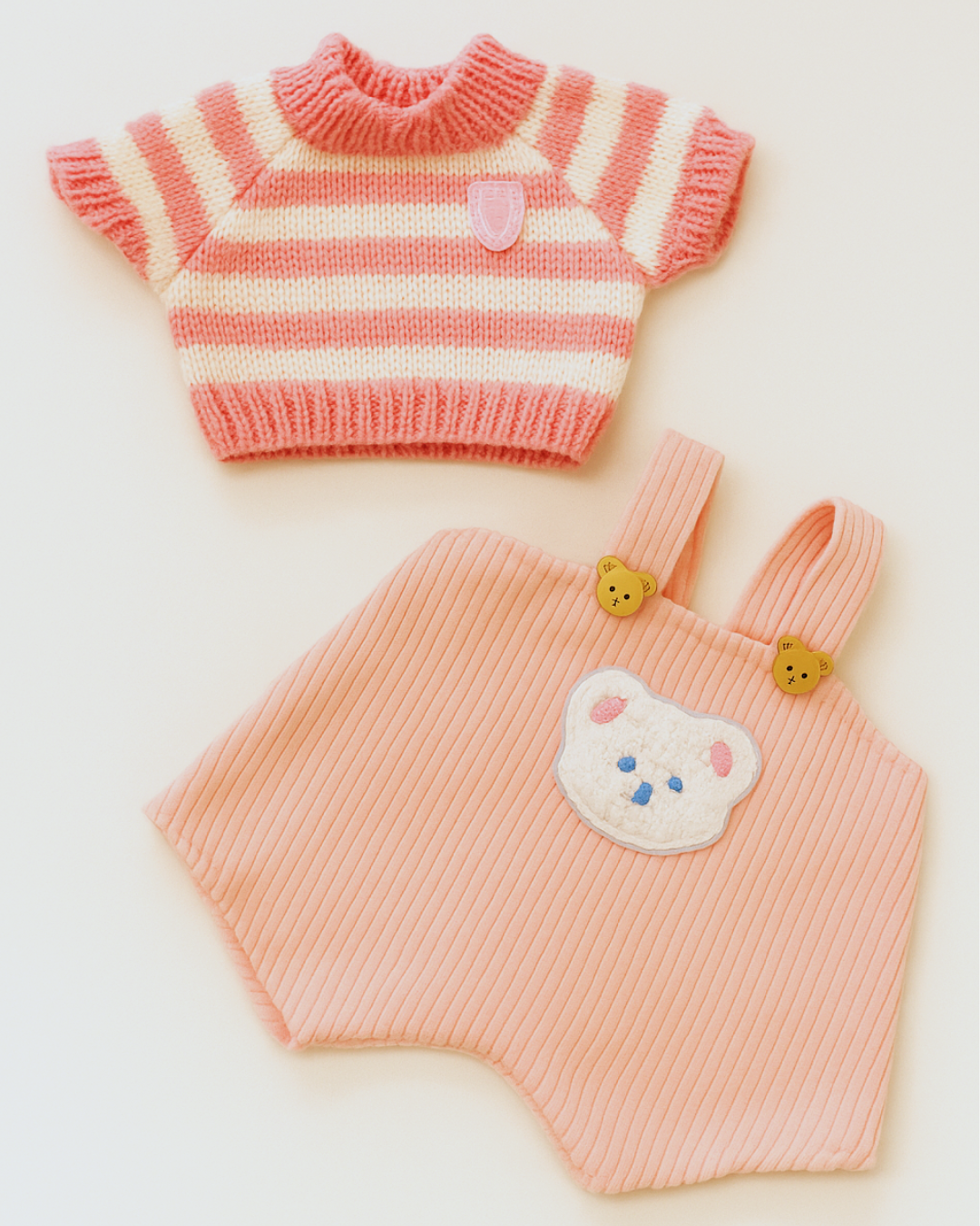 Recomendamos que el peluche tenga una altura máxima de 25 cm para asegurar un buen ajuste y que las prendas conserven su forma y estilo.
